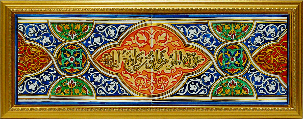 Ручная роспись плитки исламскими мотивами. Декоративное панно Шамаиль. Автор - Флера Даминова.