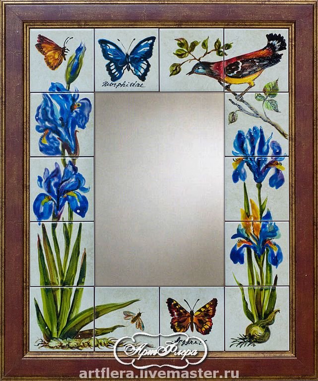 Зеркало "Ирисы и бабочки"  45 х 60 см