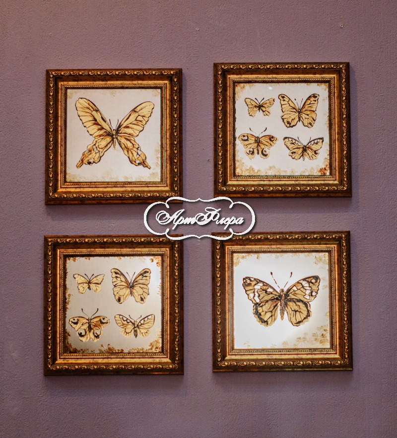 Коллекция мини зеркал, 17 х 17 см "Бабочки на стене"