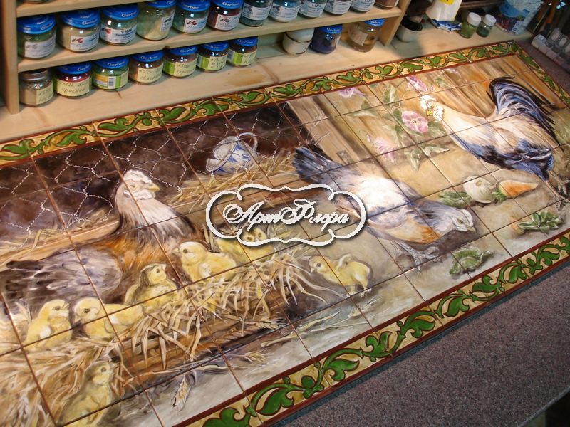 Фартук для кухни "На птичьем дворе " № 2. Фрагмент