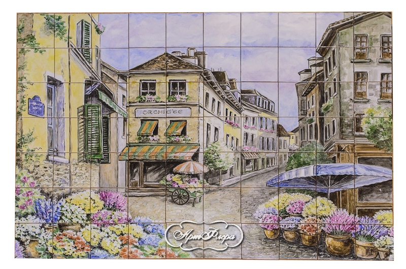 Фартук для кухни "Цветочный рынок  в Провансе", фрагмент.