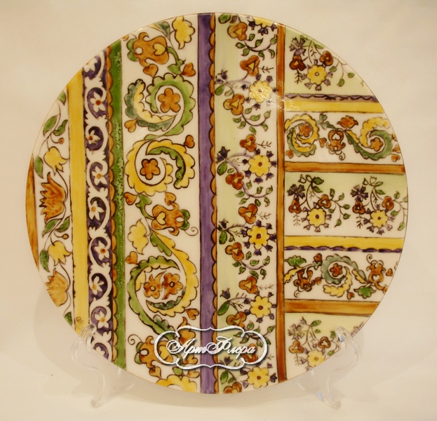 Татарский ленточный узор 1 , роспись фарфоровой тарелки 28 см, 4000 рублей