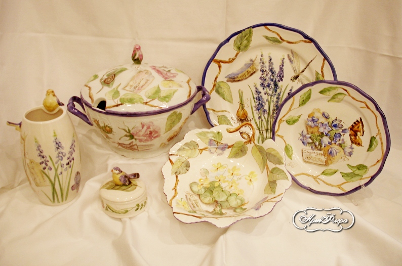 Роспись сервиза в стиле прованс.. автор Даминова Флёра
