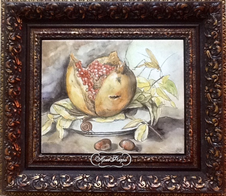 Роспись на плитке по мотивам Дж.Гарцони "Гранат кузнечик" , 20 х 25 см