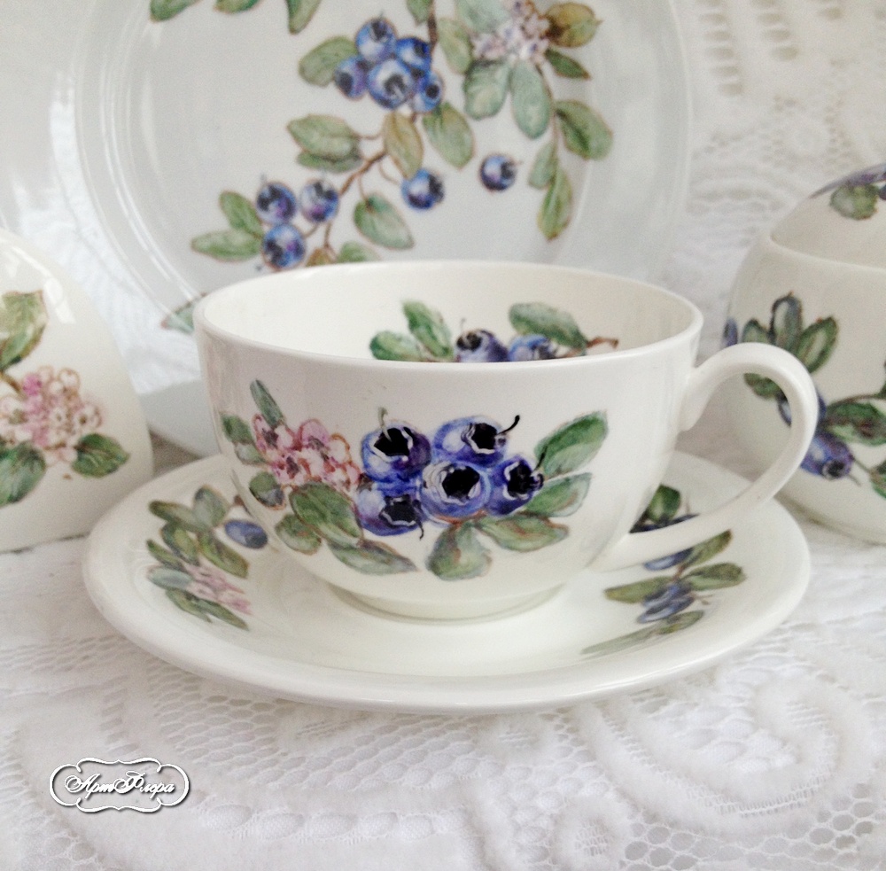 Чайная пара из сервиза "Вкусные ягоды", черника