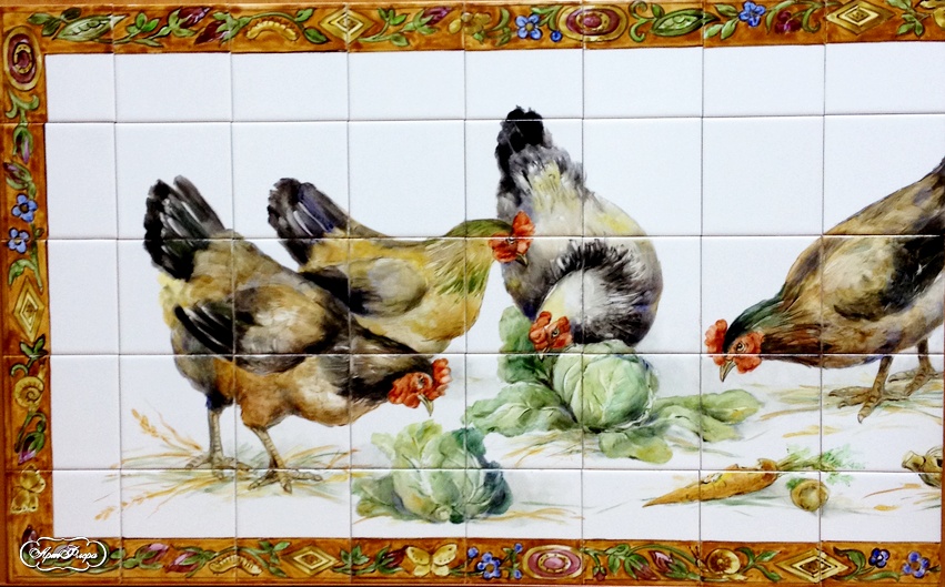 Фартук для кухни "В курятнике" , фрагмент
