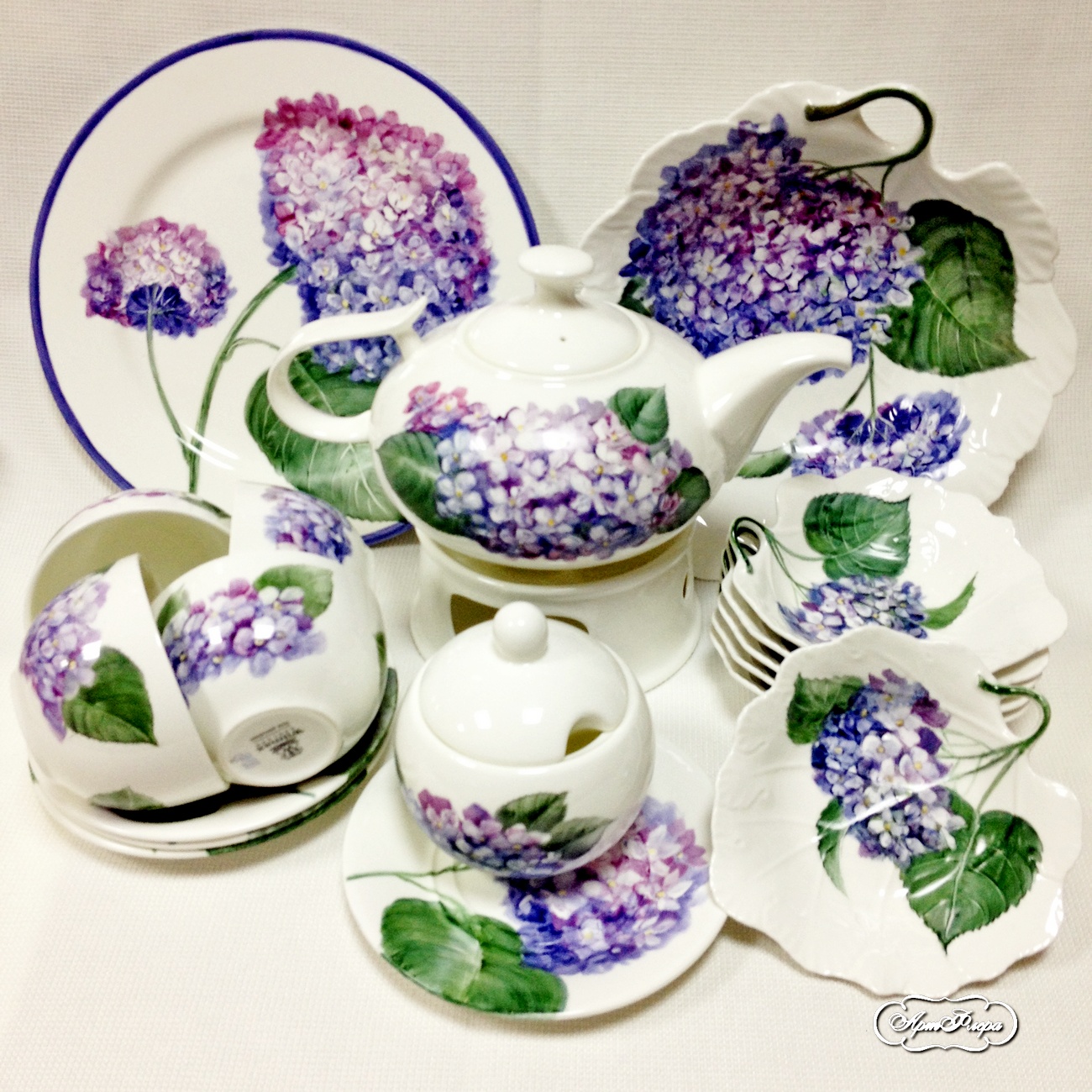Чайный сервиз "Гортензии" . Авторская работа Даминова Флёра