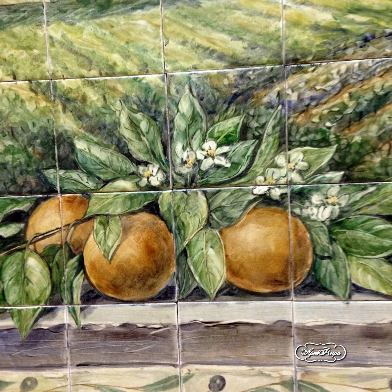 Фартук для кухни "Апельсиновая роща", фрагмент.
