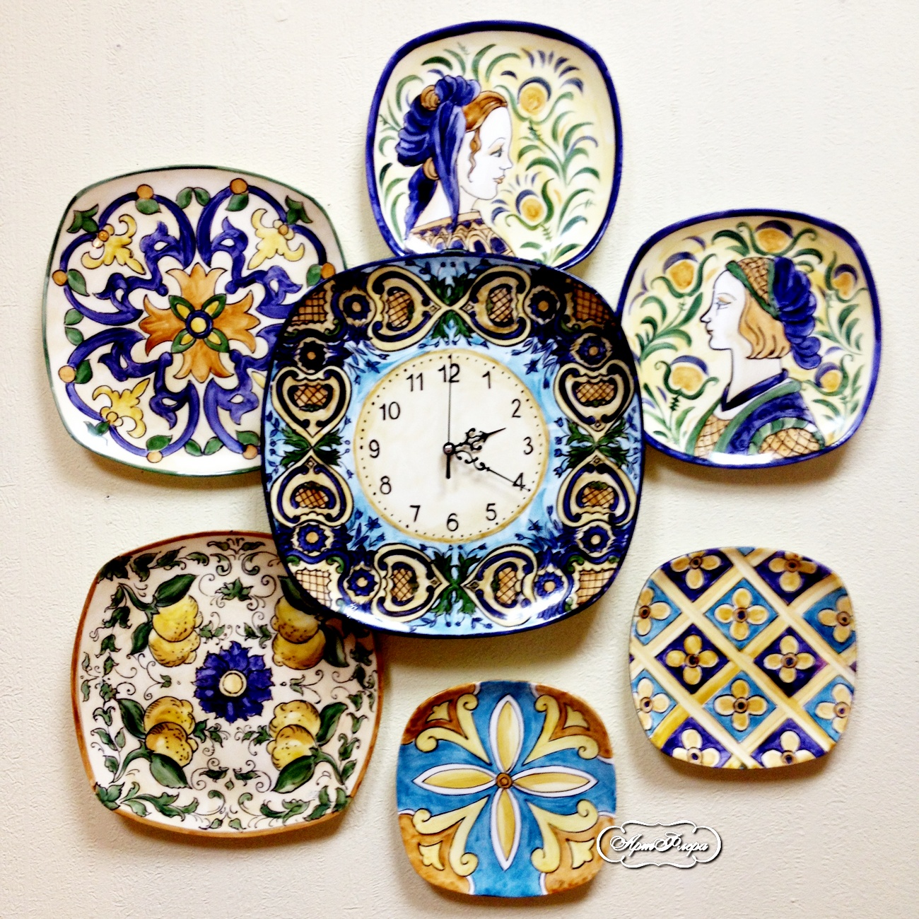 Коллекция тарелок и часы " Итальянские изразцы", 7 шт.