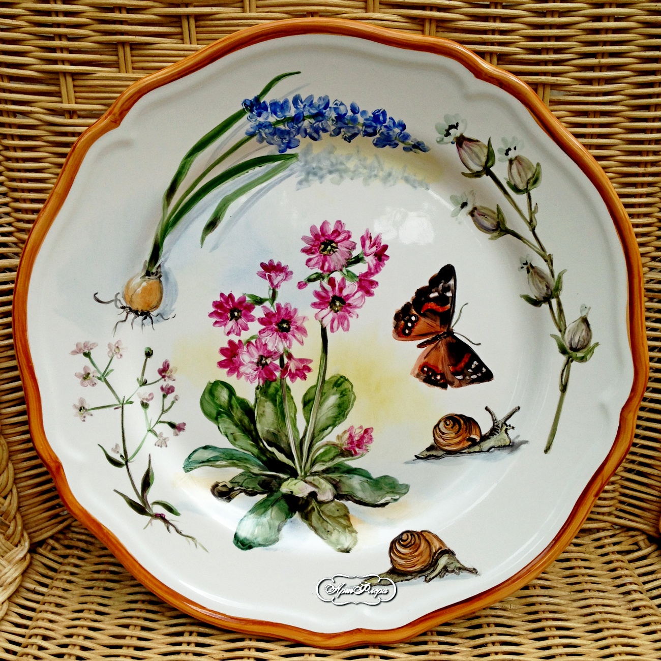 Тарелка 28 см, "Примула и улитки "