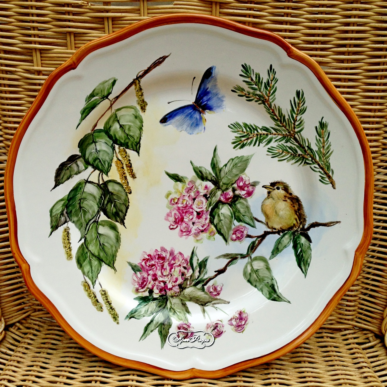 Тарелка 28 см, "Птенчик и бабочка  "