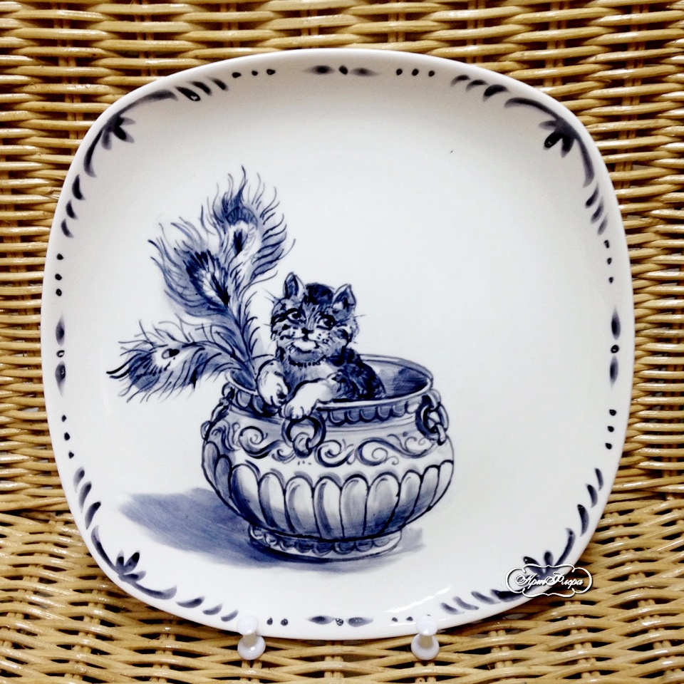 Тарелка "Котенок с перьями " , 20 см