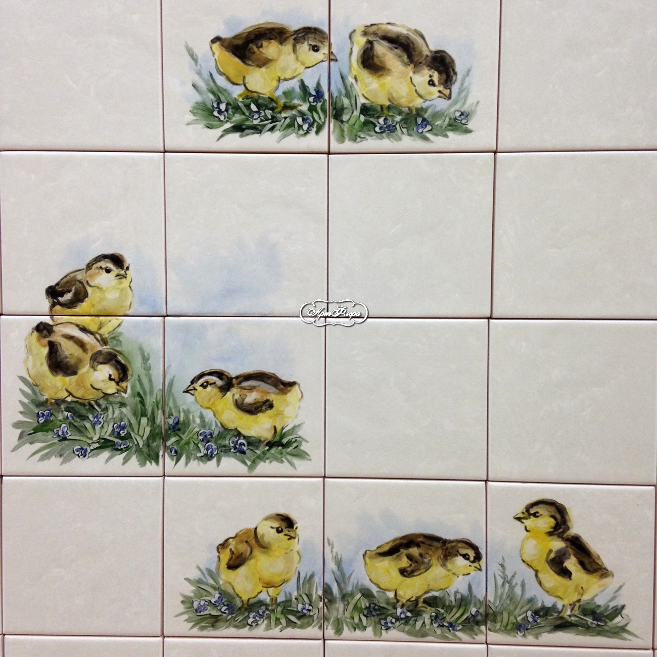Фартук для кухни "Петухи куры и цыплята" , фрагмент декор - цыплята.