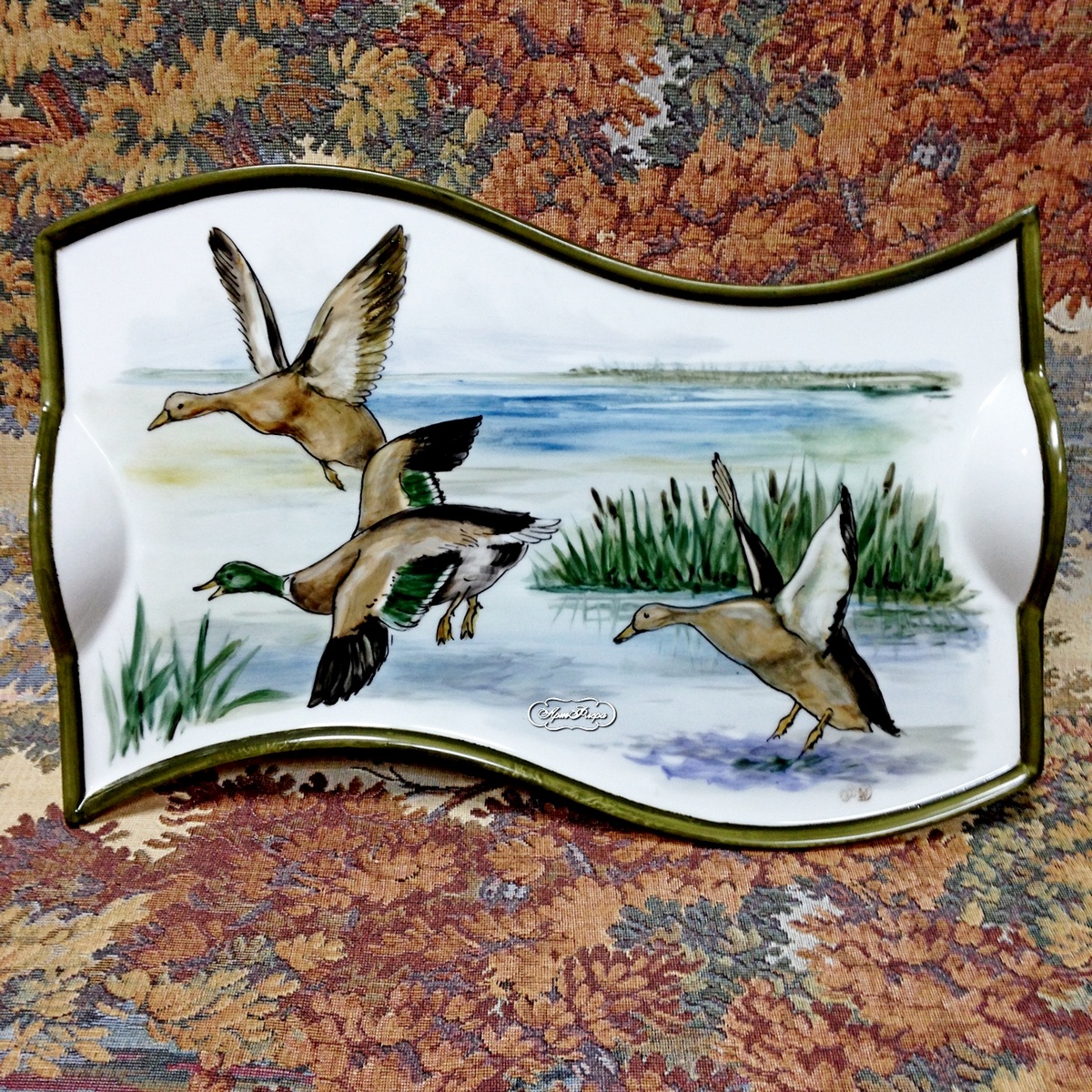Поднос фарфоровый "Утки на болоте", 31х18 см, цена 5000 рублей