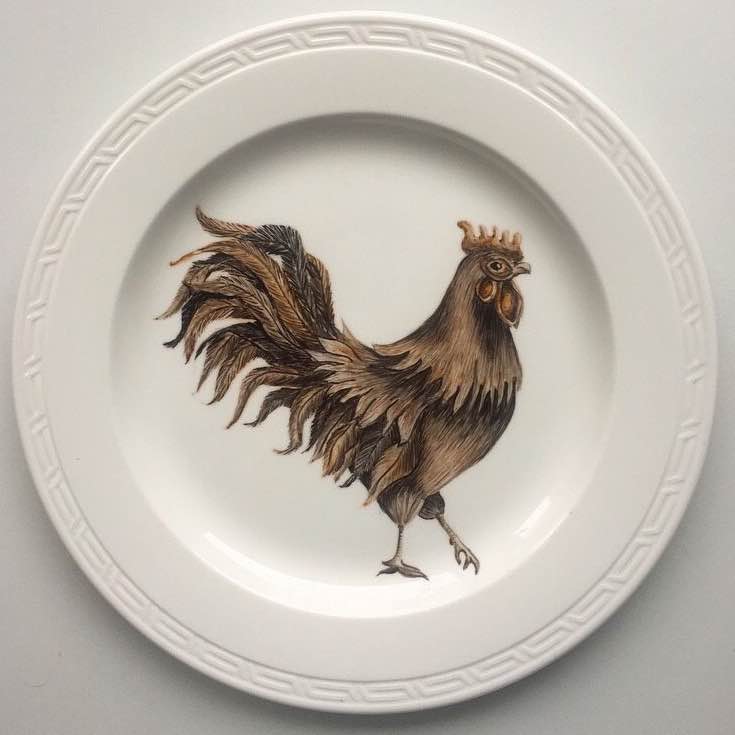Тарелка "Петушок" , 25,5 см , готовая работа - 3000 рублей