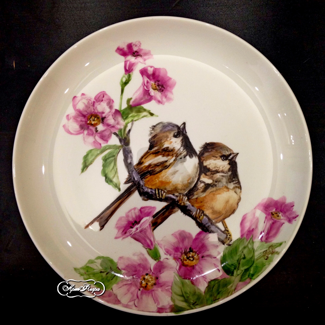 Тарелка 20 см , "Воробышки на ветке"