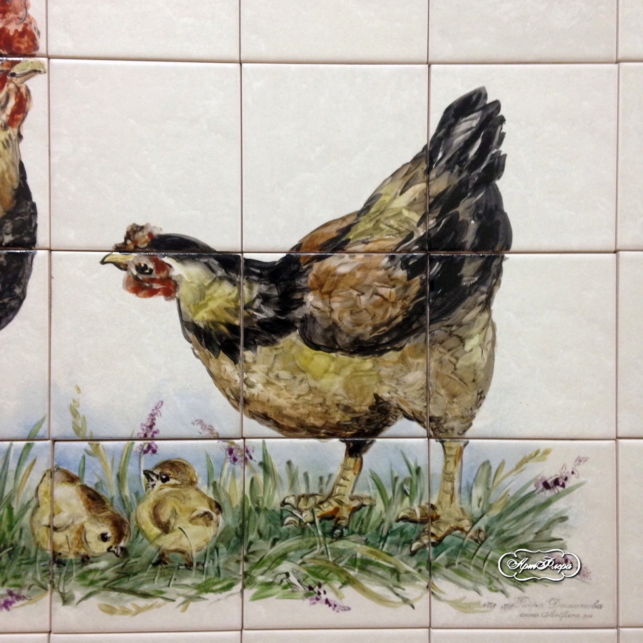 Фартук для кухни "петушки и курочки" . Фрагмент .