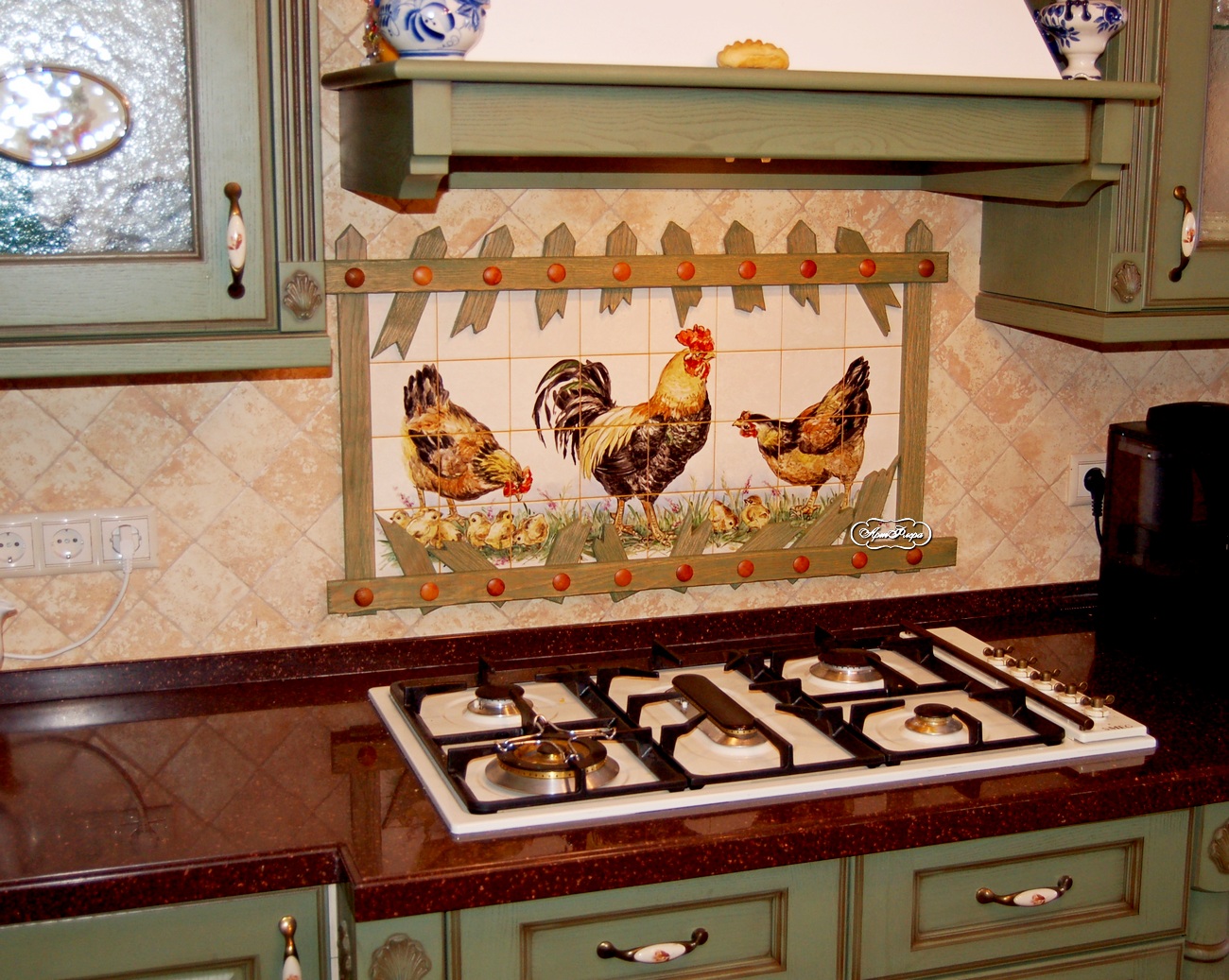 Фартук для кухни "Петушки и курочки" .