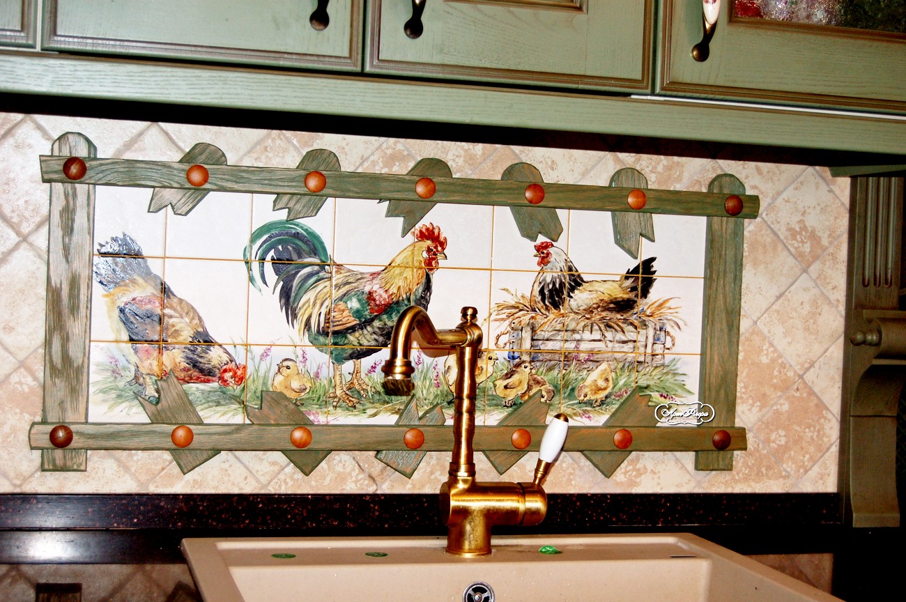 Фартук для кухни "Петушки и курочки. Семейство" .