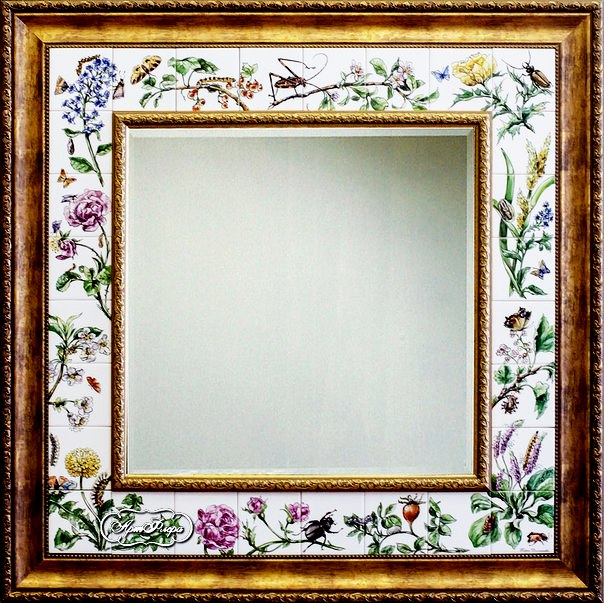 Зеркало Ботанические гравюры 100 х 100 см