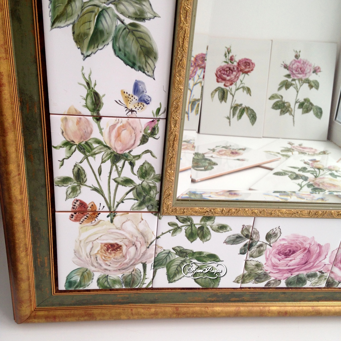 Гарнитур : Плитка в ванну 20 х30 см и зеркало  Розы