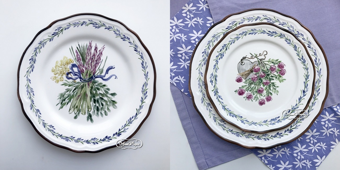 Столовые тарелки на 6 персон Травки 28 см , 22 см