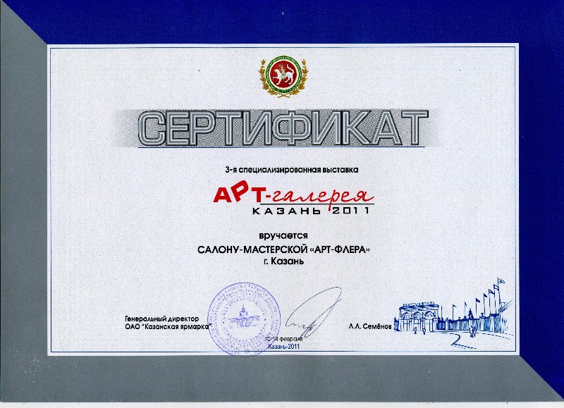 Сертификат "Арт-Галерея-2011", г. Казань