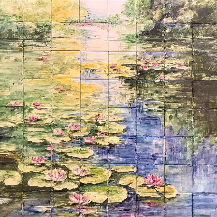 Панно на керамической плитке для ванной комнаты "Кувшинки"