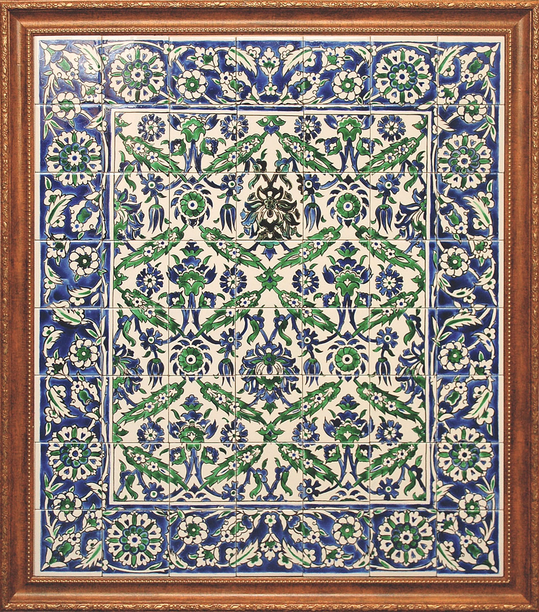 Роспись плитки "Исламский орнамент". Стеновая панель 90*80 см. Стоимость 12 000 рублей.