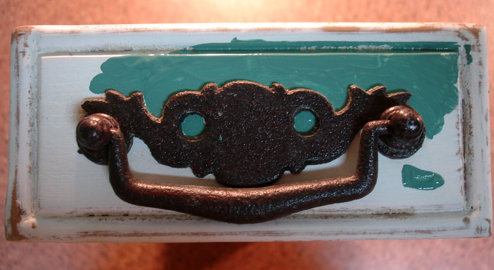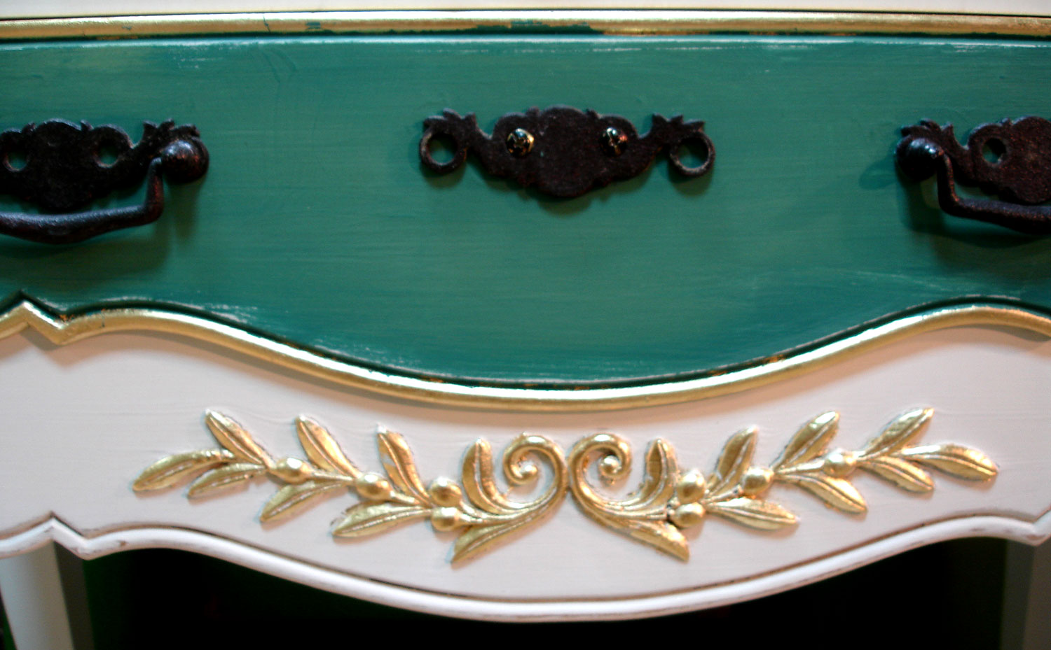 4. Переходим к оформлению фронтальной части бюро - росписи ящиков бюро, золочению орнамента: