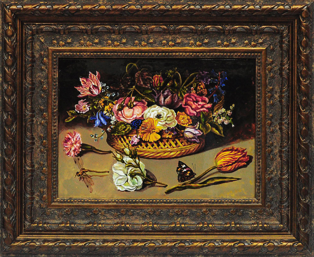 Роспись, цветы, панно 35х45 см.