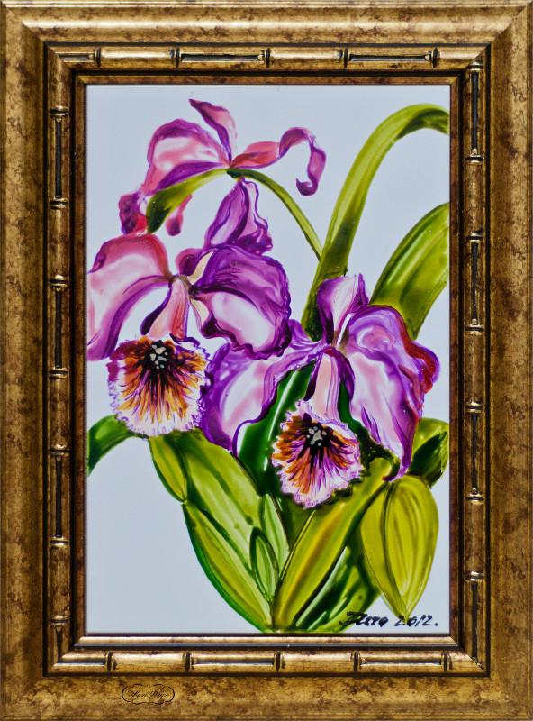 Серия работ "Орхидеи", роспись по плитке: