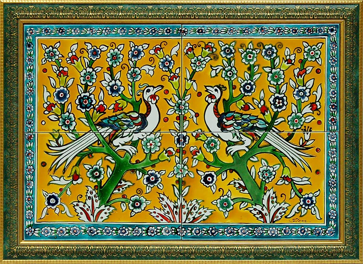Ручная роспись плитки исламскими мотивами. Декоративное панно Птицы на дереве. Автор - Флера Даминова.