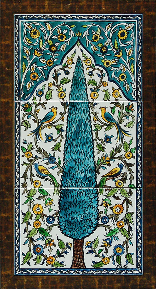Ручная роспись плитки исламскими мотивами. Декоративное панно Кипарис, горячий обжиг. Автор и исполнитель - Флера Даминова.