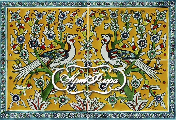 Панно в хамам " Птицы на желтом", 40 х 60  см