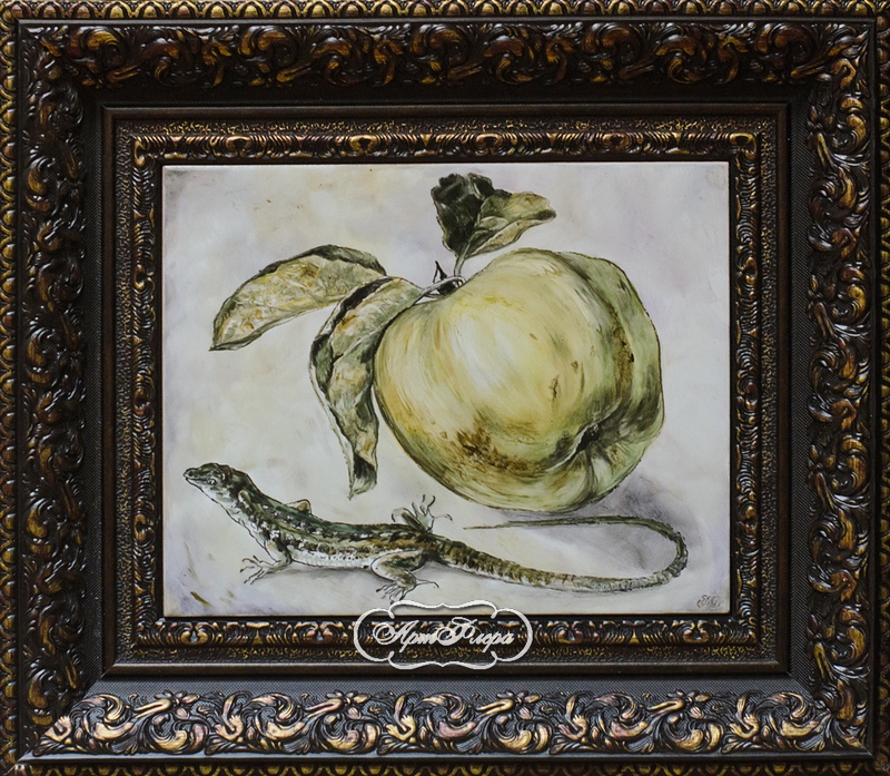 Роспись на плитке "Ящерица и яблоко" по Дж.Гарцони 20 х 25 см
