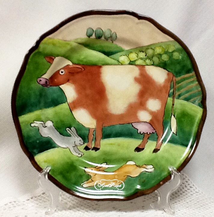 Тарелка " Корова и зайцы", 28 см, 3000 рублей