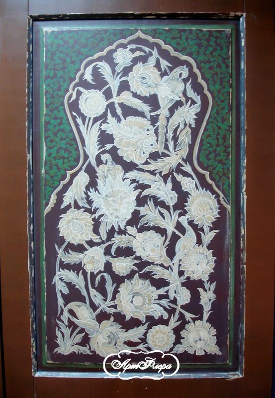 Дверь в восточном стиле "Арабеска" коричневая, 90 х 200 см, фрагмент верхней части части