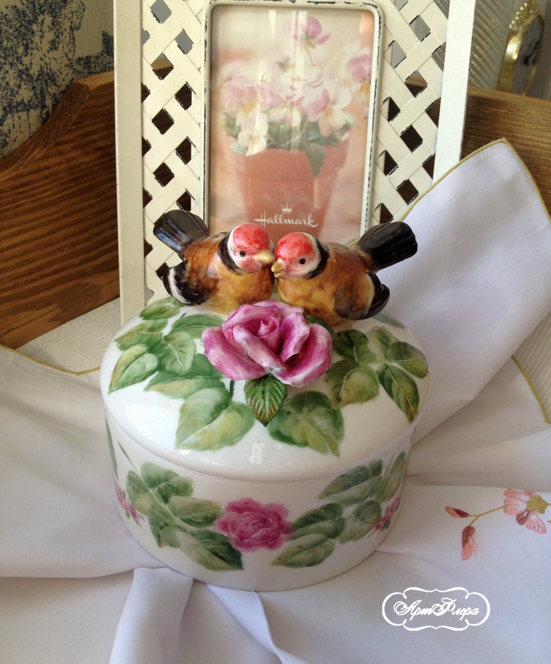 Шкатулка " Роза и щеглы" , 12 х 12 см