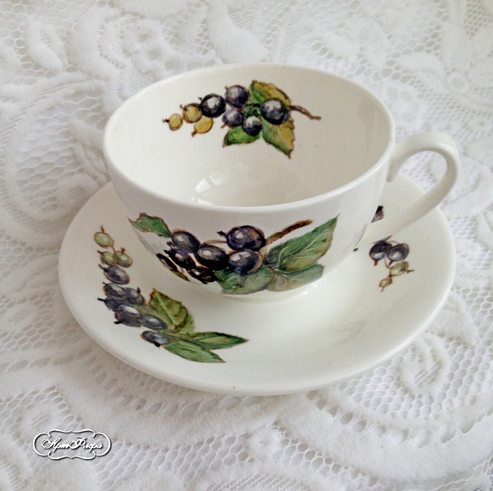 Чайная пара из сервиза "Вкусные ягоды", смородина
