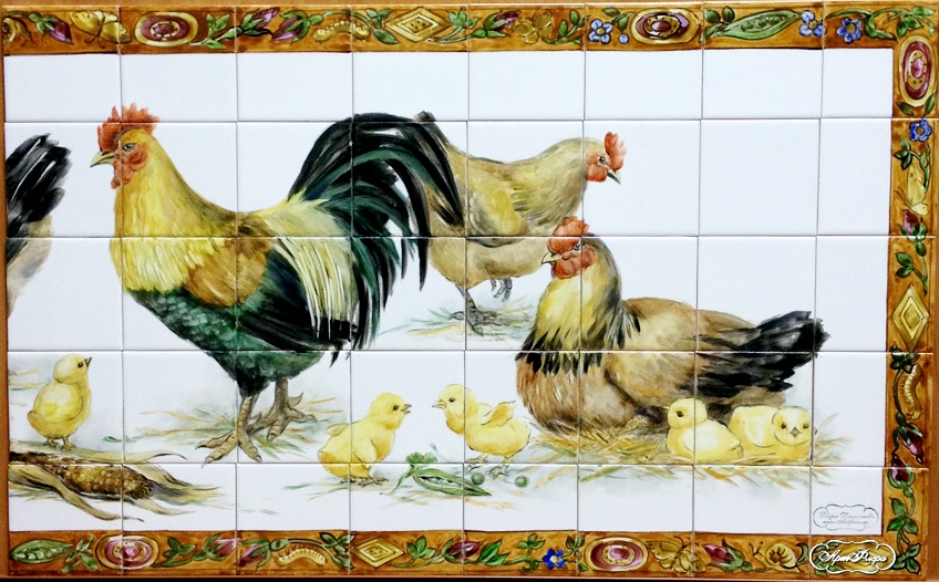 Фартук для кухни "В курятнике" , фрагмент