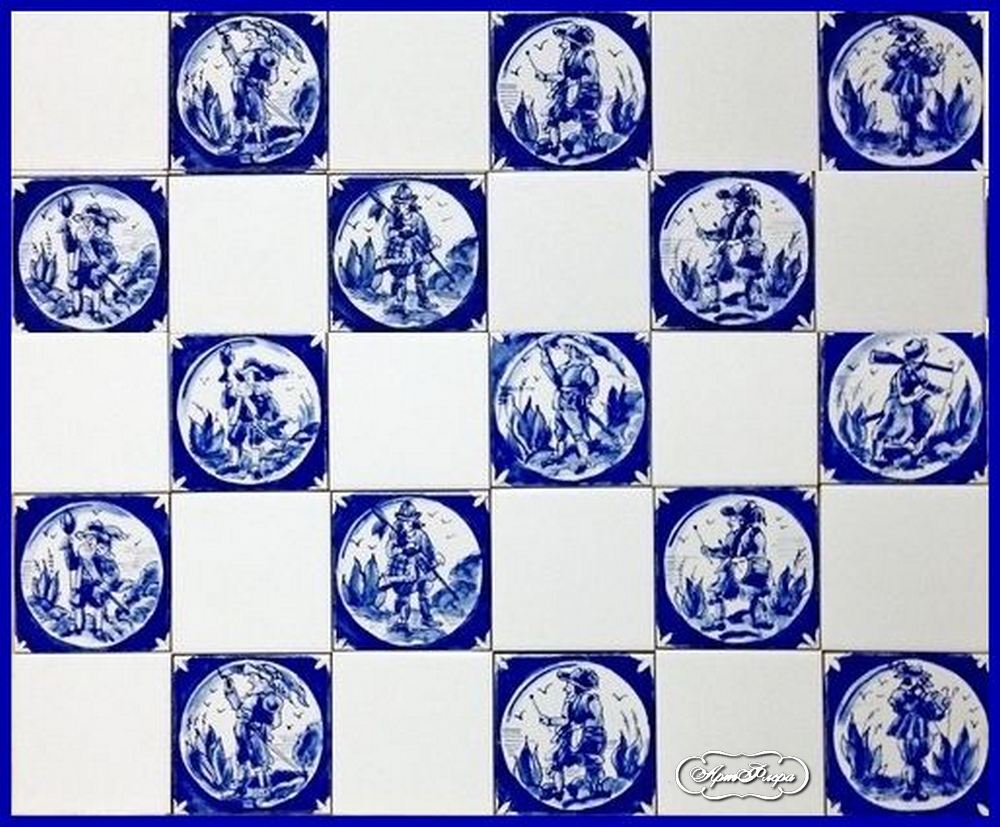 Панно "Дельфтские изразцы. Вояки"модуль. 1шт. 10 х 10 см