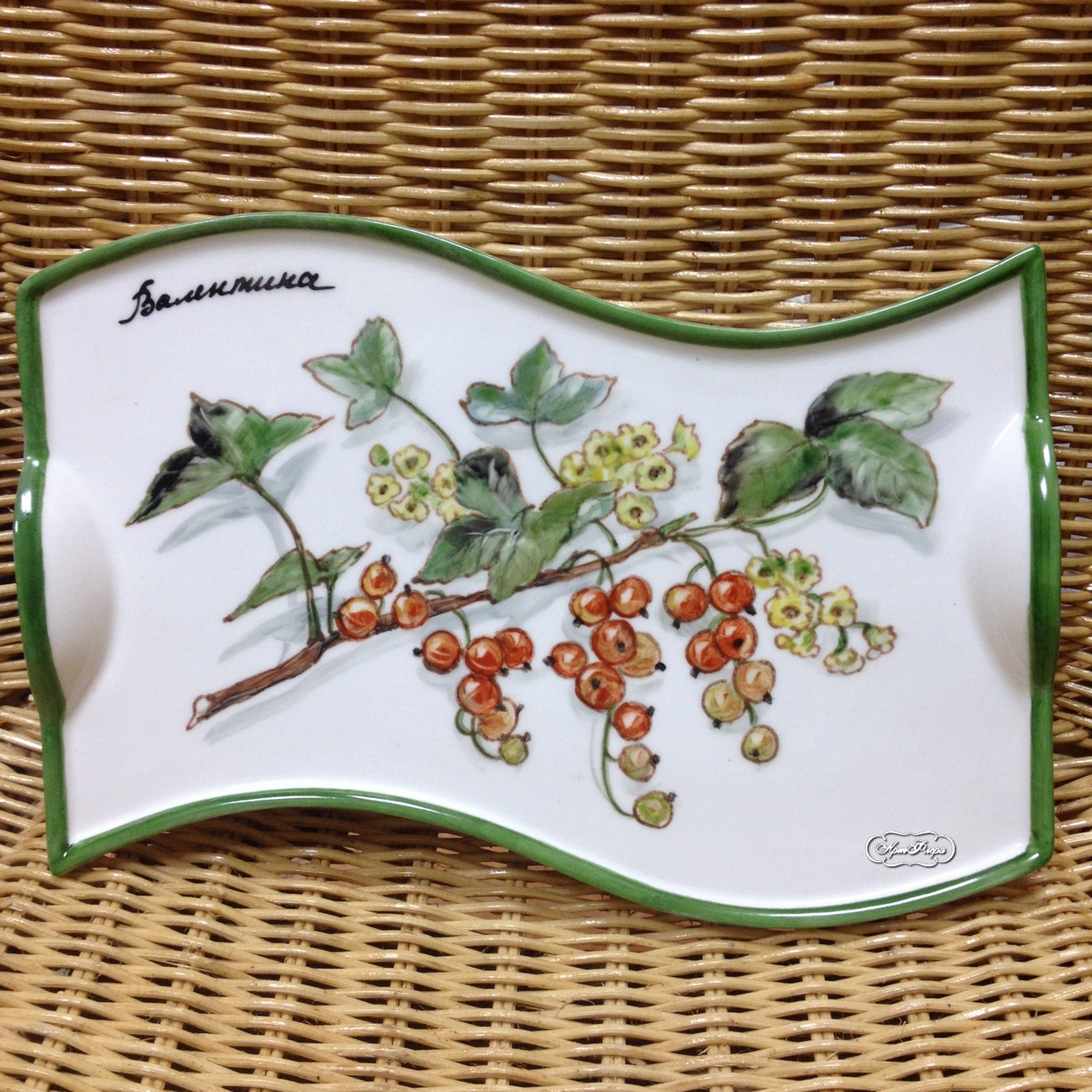 Поднос фарфоровый "Красная смородина", 15х25 см