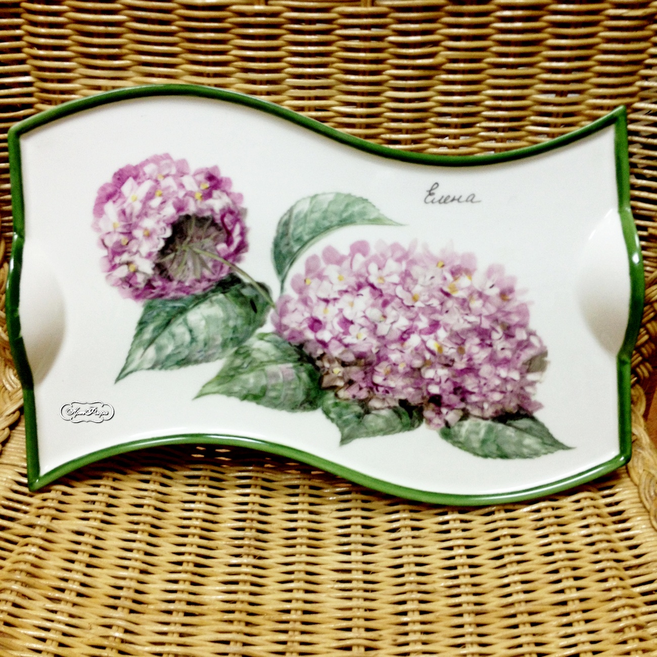 Поднос фарфоровый "Розовая гортензия", 17х28 см