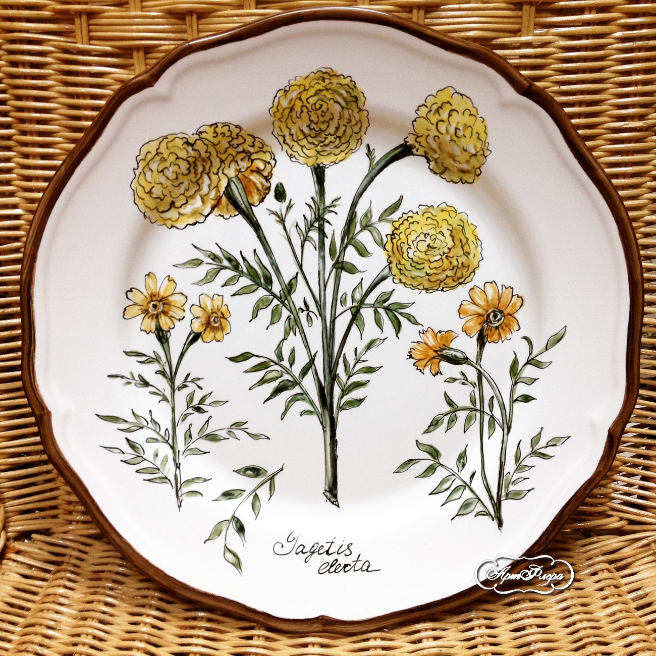 Тарелка, ботанические гравюры "Тагетис", 28 см
