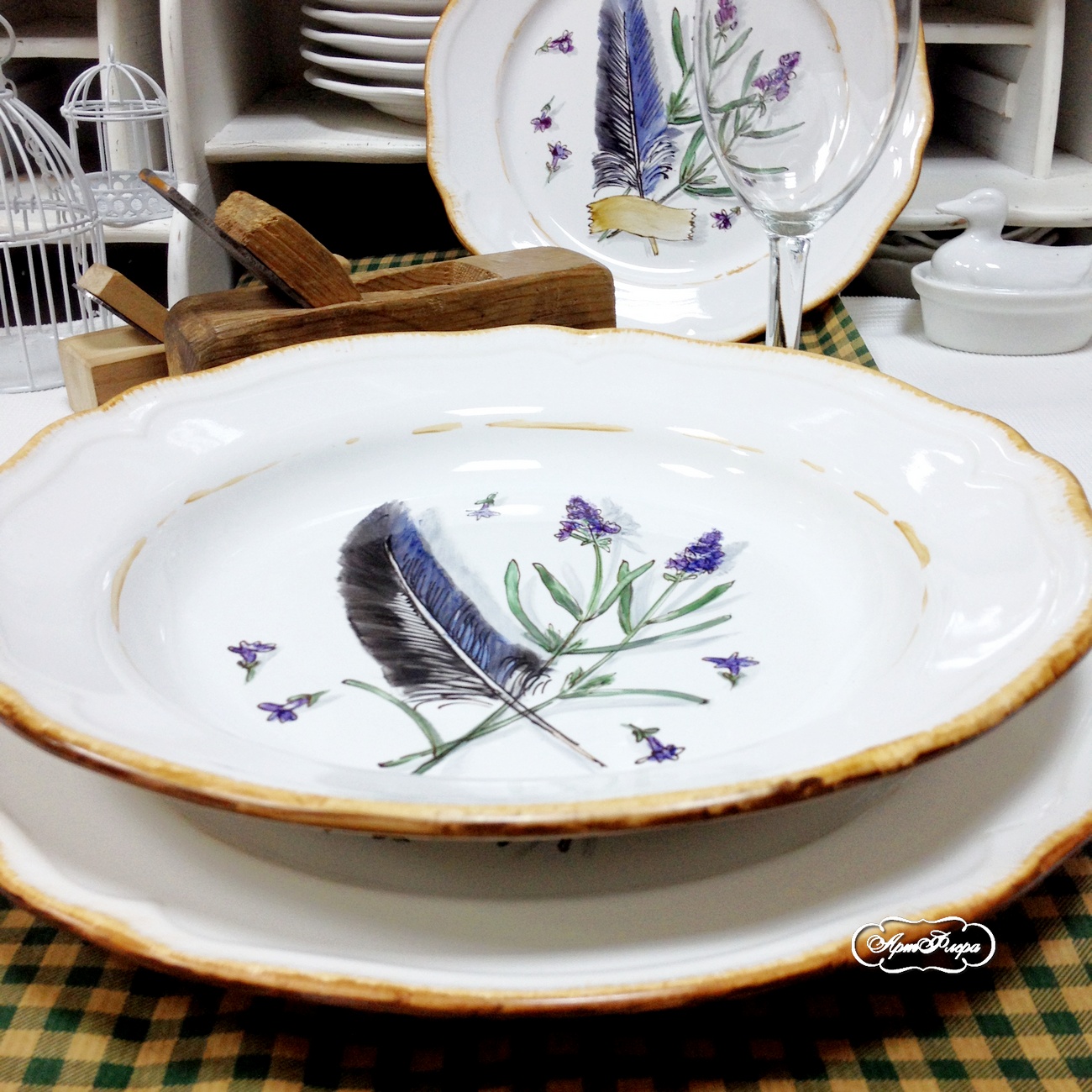 Комплект из трех столовых тарелок "Перышки и лаванда" 22 см, 28 см, 28 см, 5500 рублей