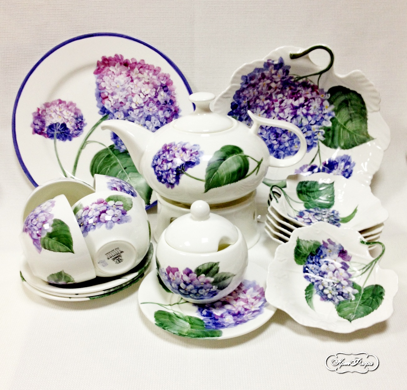 Чайный сервиз "Гортензии", Авторская надглазурная роспись по фарфору. Даминова Флера