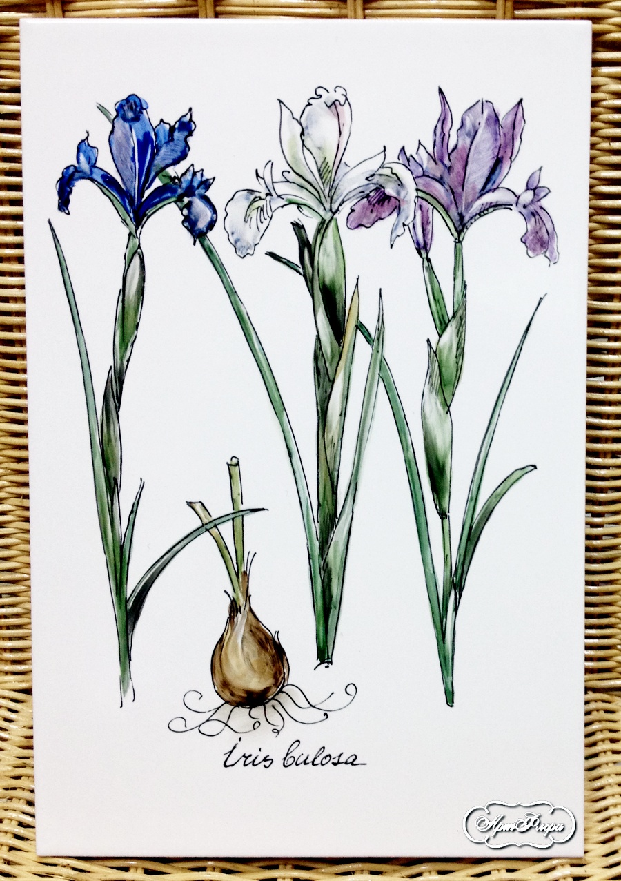 Роспись плитки 20х30 см,  Ирис Касатик