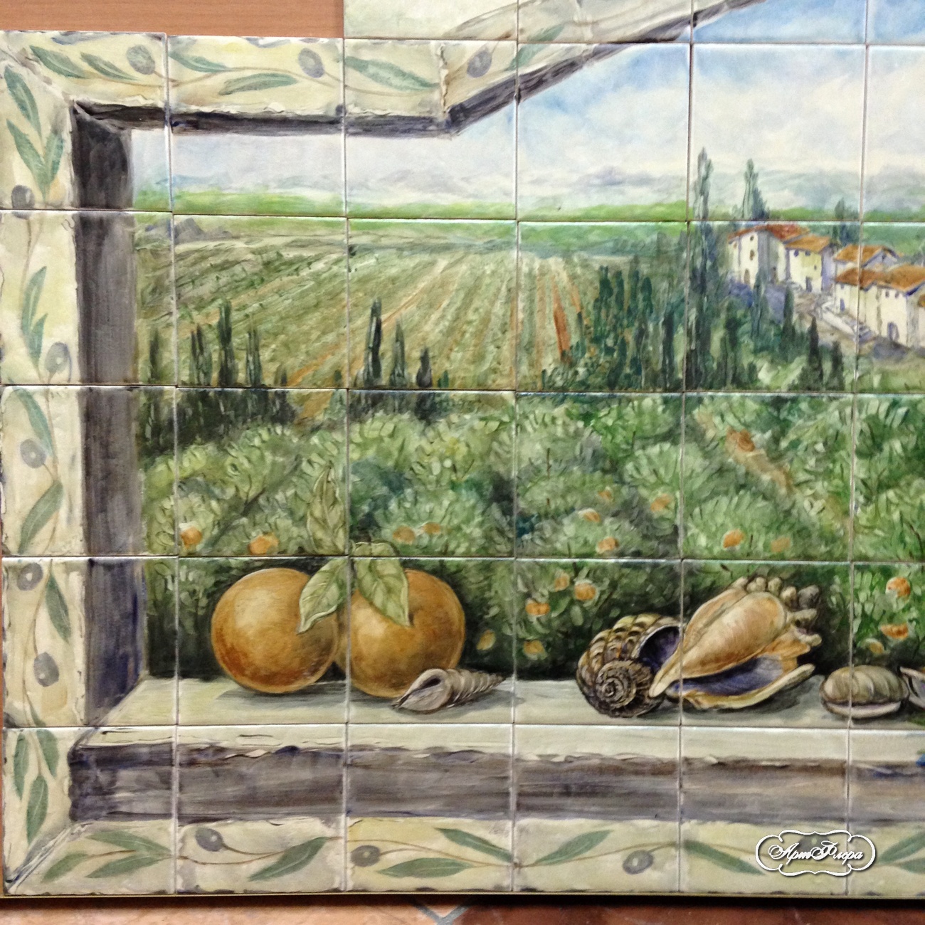 Фартук для кухни "Апельсиновая роща", фрагмент.
