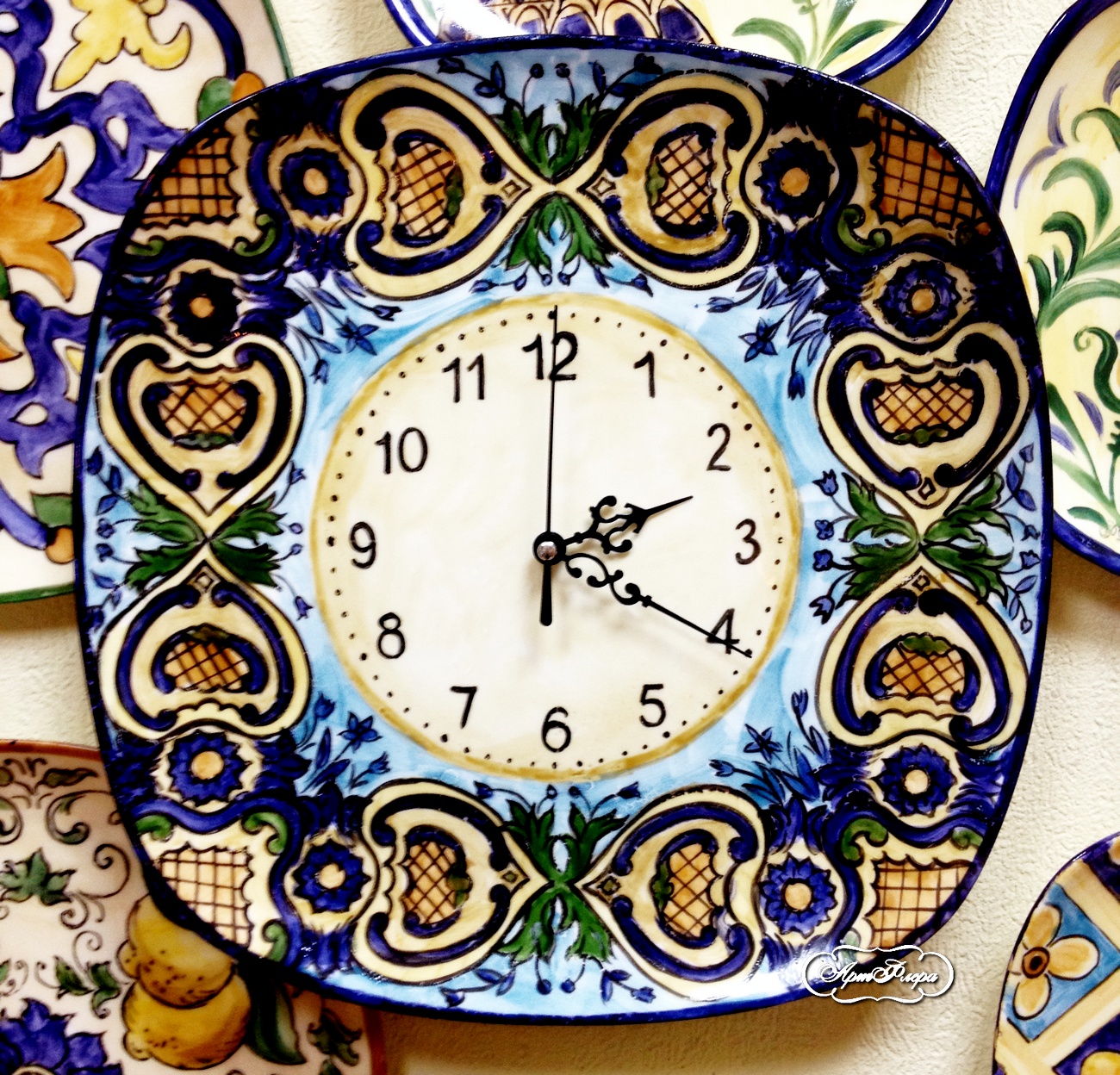 Коллекция тарелок и часы " Итальянские изразцы",  7 шт.